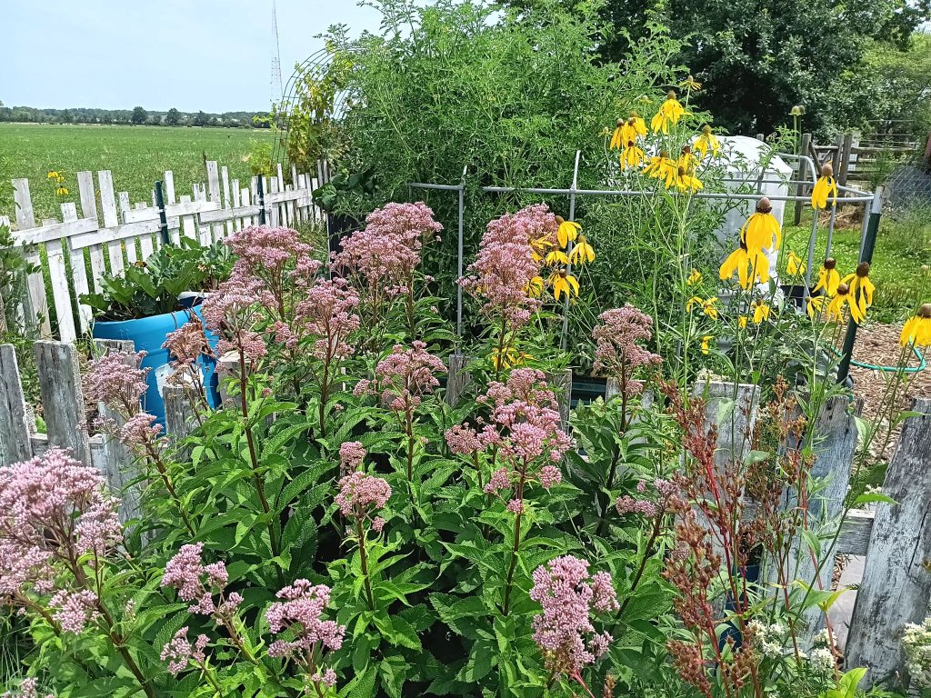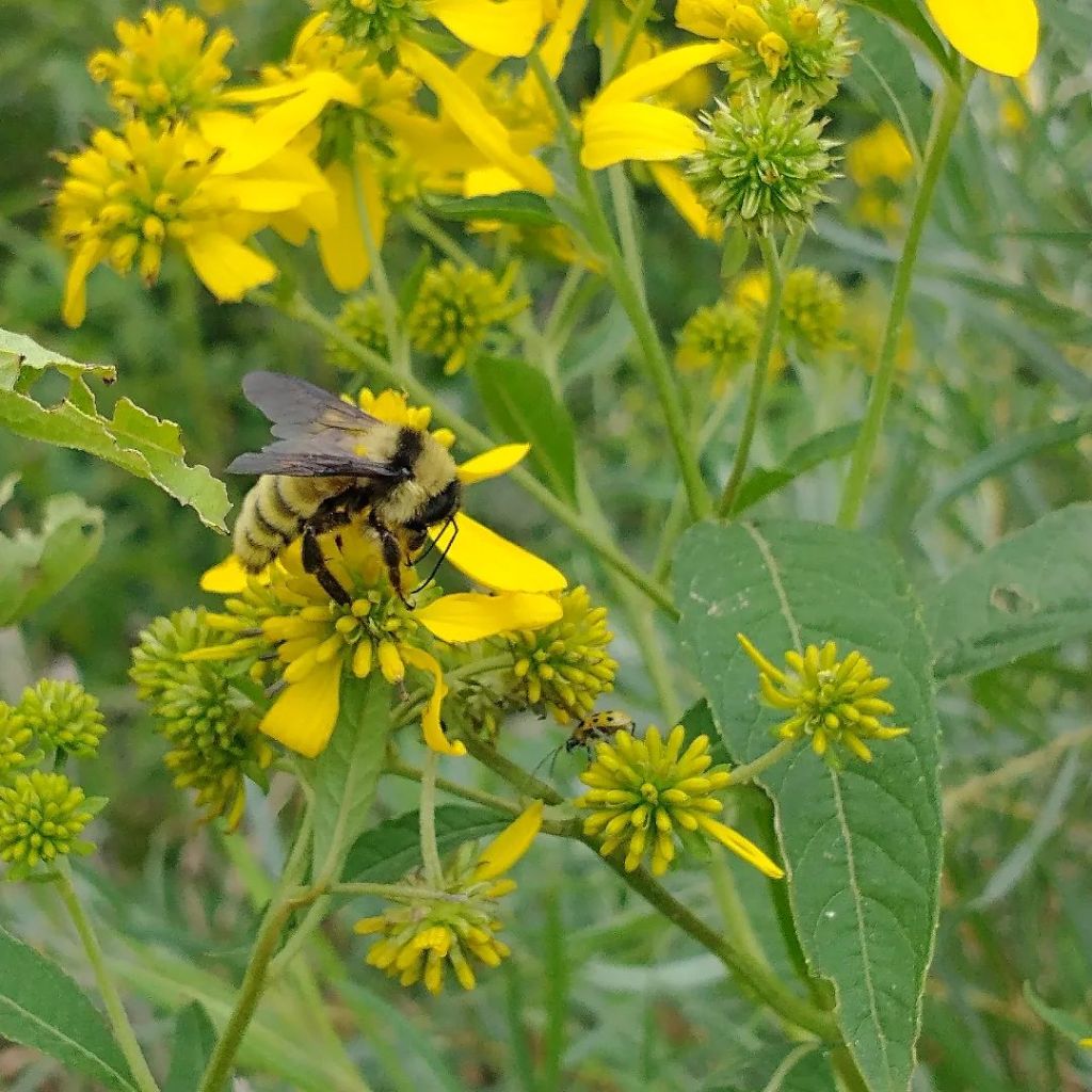 Borage (Borago officinalis) is often included in companion planting for attracting pollinators, specifically bumblebees to vegetable flowers, greatly increasing their yield. Borage is used for improving the soil and flavor of nearby plants, while also being edible itself. As Borage is not native to the Americas and can escape gardens to become problematic, I wondered what Ohio native plants could be utilized as alternatives to benefit my garden long term and also appease the bumblebees.